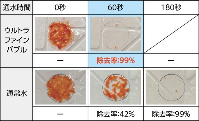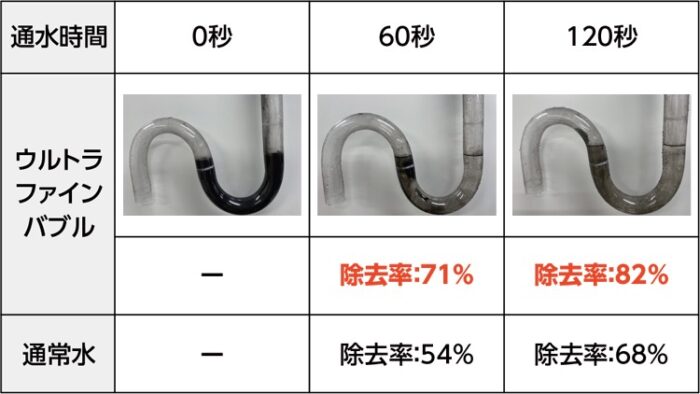 掃除がしづらい排水管内の汚れ除去で、通常水と比べて除去率約17%アップの効果が確認できています。