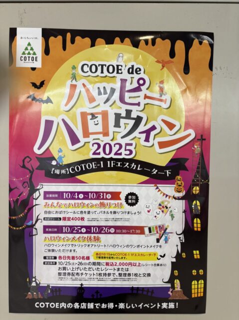 10/25(土)26(日)COTOE流山おおたかの森で「ハロウィンメイク体験」が開催!お買い物も楽しんで、ハロウィンも楽しんじゃおう!