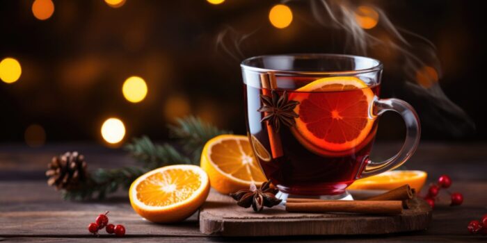 グリューワインは、ドイツ語で「燃えるような熱」を意味する、スパイスとフルーツを加えた温かいワインです。ヨーロッパのクリスマスマーケットで定番の飲み物です。