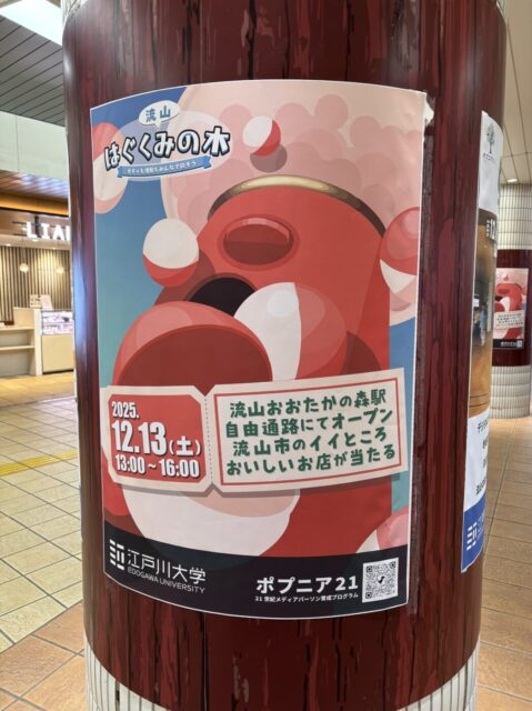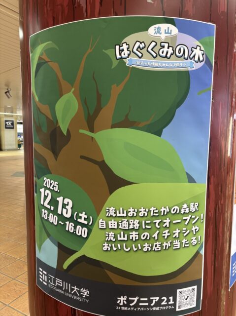 12/13(土)流山おおたかの森駅自由通路にて江戸川大学の学生さん達による地域交流イベント「流山はぐくみの木〜ガチャも情報もみんなで回そう〜」が開催がされます。