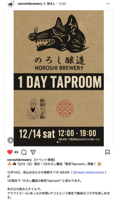 ※のろし醸造さんのインスタグラムをキャプチャーしました。