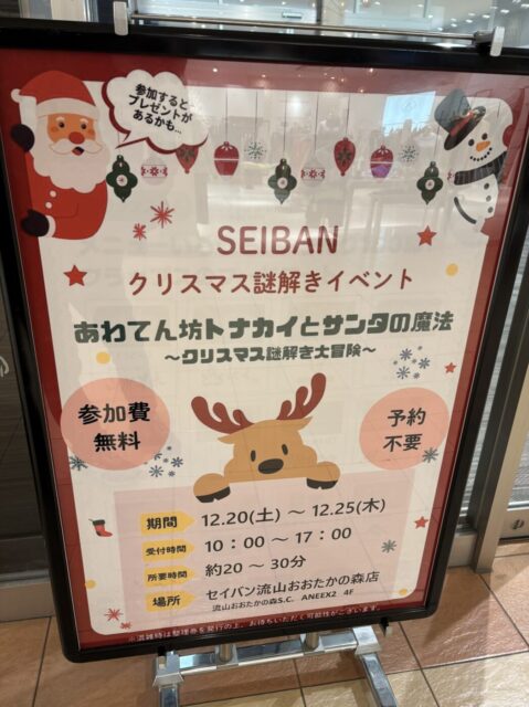 12/20(土)〜25(木)セイバン流山おおたかの森店にて、クリスマス謎解きイベント「あわてん坊トナカイとサンタの魔法 ~クリスマス謎解き大冒険~」が開催♪