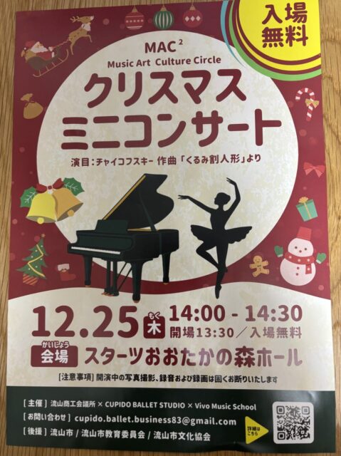 12/25(木)スターツおおたかの森ホールにて、Music Art Culture Circleさんによる「クリスマスミニコンサート」開催されます。