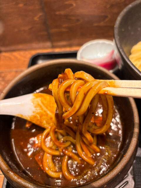 アツアツのカレー汁に冷たく引き締まった麺との相性は語るまでもないのです。