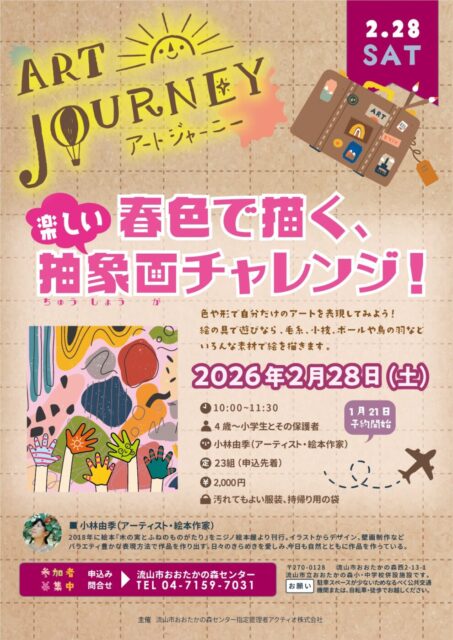 【参加者募集中】2/28(土)流山市おおたかの森センターにて、「アートジャーニー ~春色で描く、楽しい抽象画チャレンジ!~」