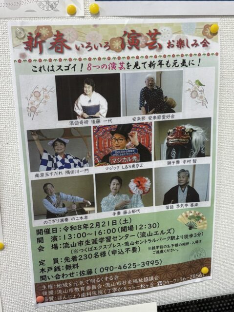 2/21(土)流山市生涯学習センター(流山エルズ)で「新春いろいろ演芸お楽しみ会」が開催されます。