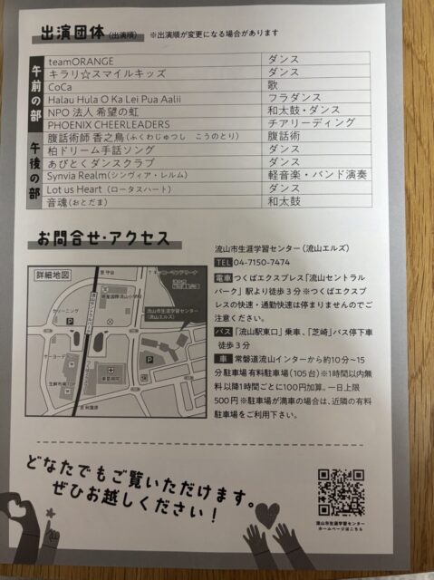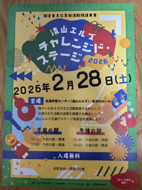 2/28(土)流山市生涯学習センター(流山エルズ)にて、障害者文化芸術活動推進事業「流山エルズチャレンジド・ステージ2026」が開催されます。