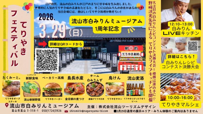 これを記念して、2026年3月29日(日)に、白みりんミュージアム1周年記念「TERIYSAKIフェスティバル」が開催されます。