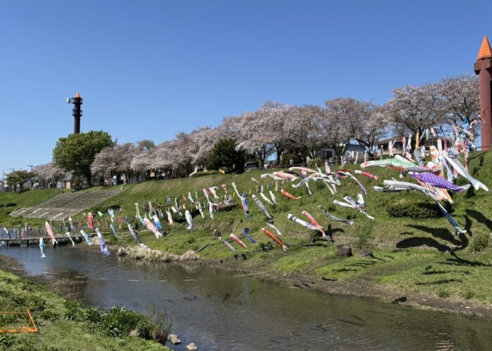 利根運河(運河水辺公園)に、桜と鯉のぼりを見てきました!