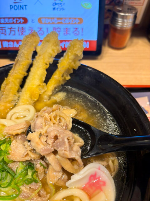 うどんも太く、具沢山で、ボリュームはあるのに、最後まで飽きることなく夢中になって、美味しく食べられる一杯でした。