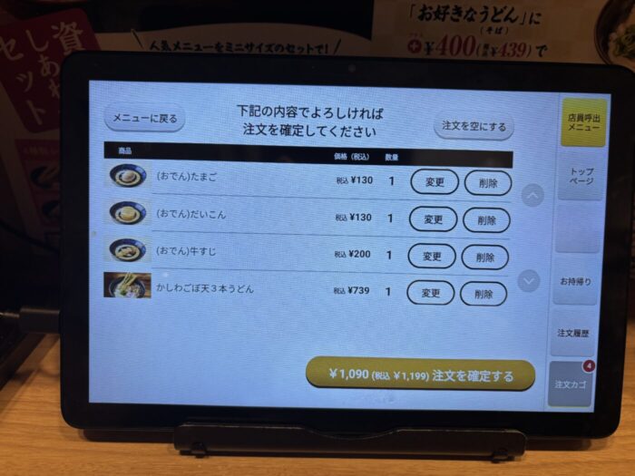 ・・・そして、おでんを食べ終わって、ちょっと時間が経ってから、うどんが到着しました。