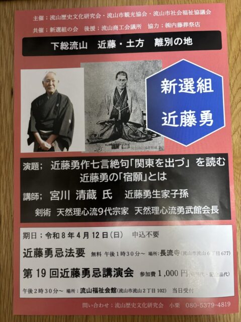 4/12(日)長流寺にて「近藤勇忌法要」、流山福祉会館にて「第19回近藤勇忌講演会」が開催