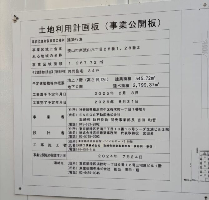 ◾️関連ページ:南流山6丁目のもともとENEOSだった土地の工事は、やっぱり分譲マンションでしたよ!