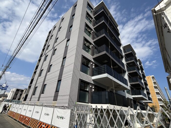 南流山6丁目の分譲マンション「レーベン南流山torte」。養生幕が外れ外観が現れました。