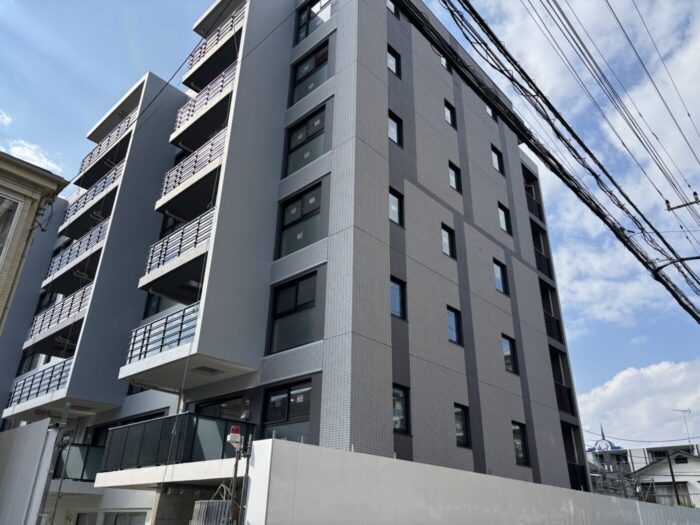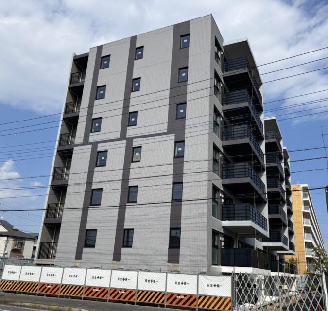 南流山6丁目に建築中の分譲マンション「レーベン南流山torte」の養生幕が外れ、外観を見ることができました。