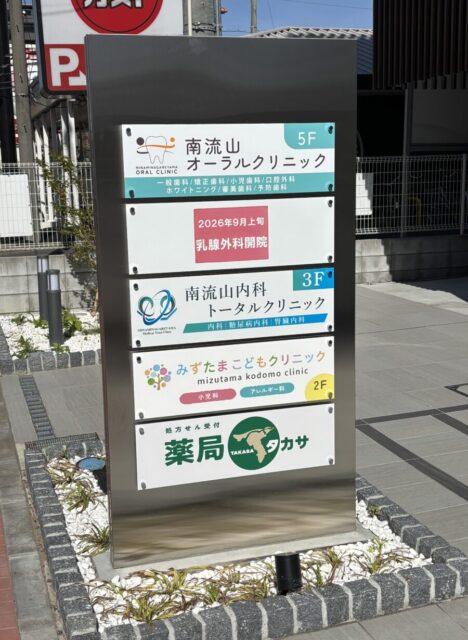 次の日にビルを確認したところ5F部分に「南流山オーラルクリニック」さんの看板が付けられていました。
