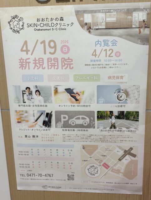 【開院】流山おおたかの森S.C. ANNEX2の4Fに「おおたかの森 SKIN・CHILDクリニック」が4/19(日)に開院しました。